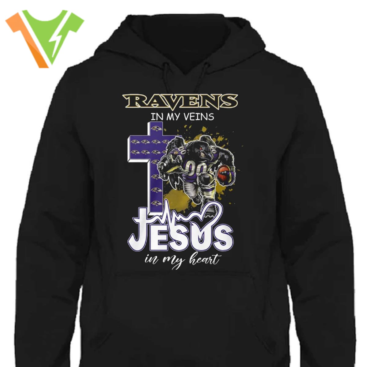 Ravens In My Veins Jesus In My Heart Shirt Sweatshirt Hoodie Features